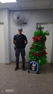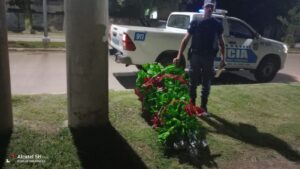 Consecuencia para resguardo se incautó el arbolito, fabricado con material plásticos. Existen cámaras de seguridad inmediaciones. Se instruyen actuaciones judiciales de rigor, con intervención de Magistratura en turno.