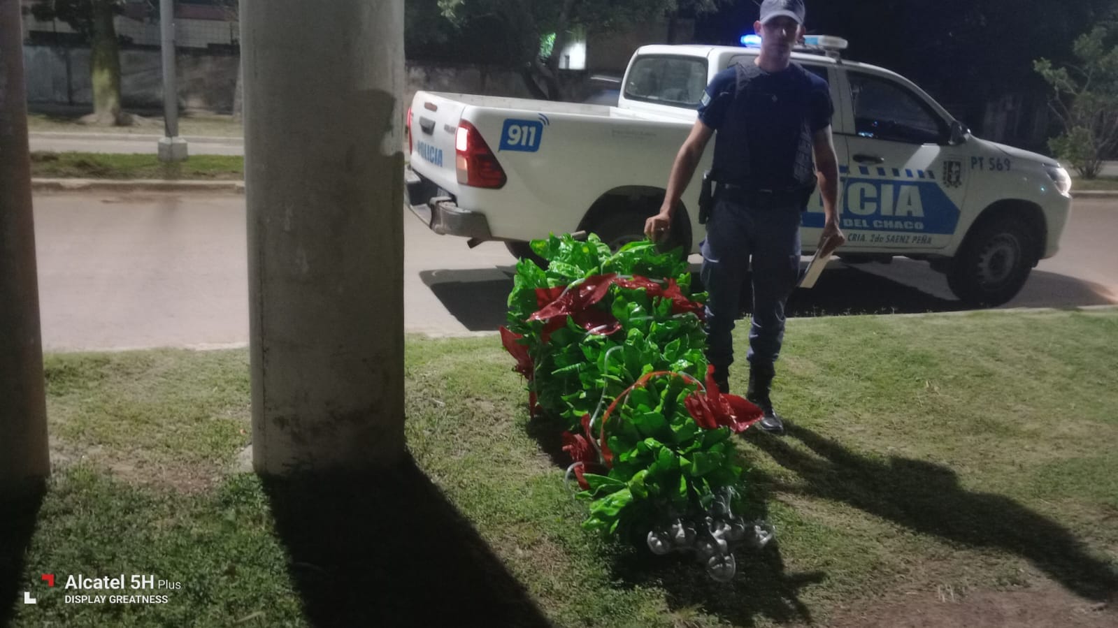 Esta madrugada , personal policial de Comisaría Segunda, tomó conocimiento vía radial que sobre Av. 01 y C/ 16 Barrio Ensanche Sur, una camioneta Partner, color gris, habría sustraído uno de los arbolitos de navidad instalados por el municipio en espacio público; en virtud a que la prevención se hallaban de recorridas en las cercanías, se llegó de forma urgente al lugar, observando a la distancia que el vehículo mencionado arrojó el árbol, posiblemente notando la presencia policial; dándose a la fuga a alta velocidad, no siendo posible la identificación del rodado, se alerto demás móviles.