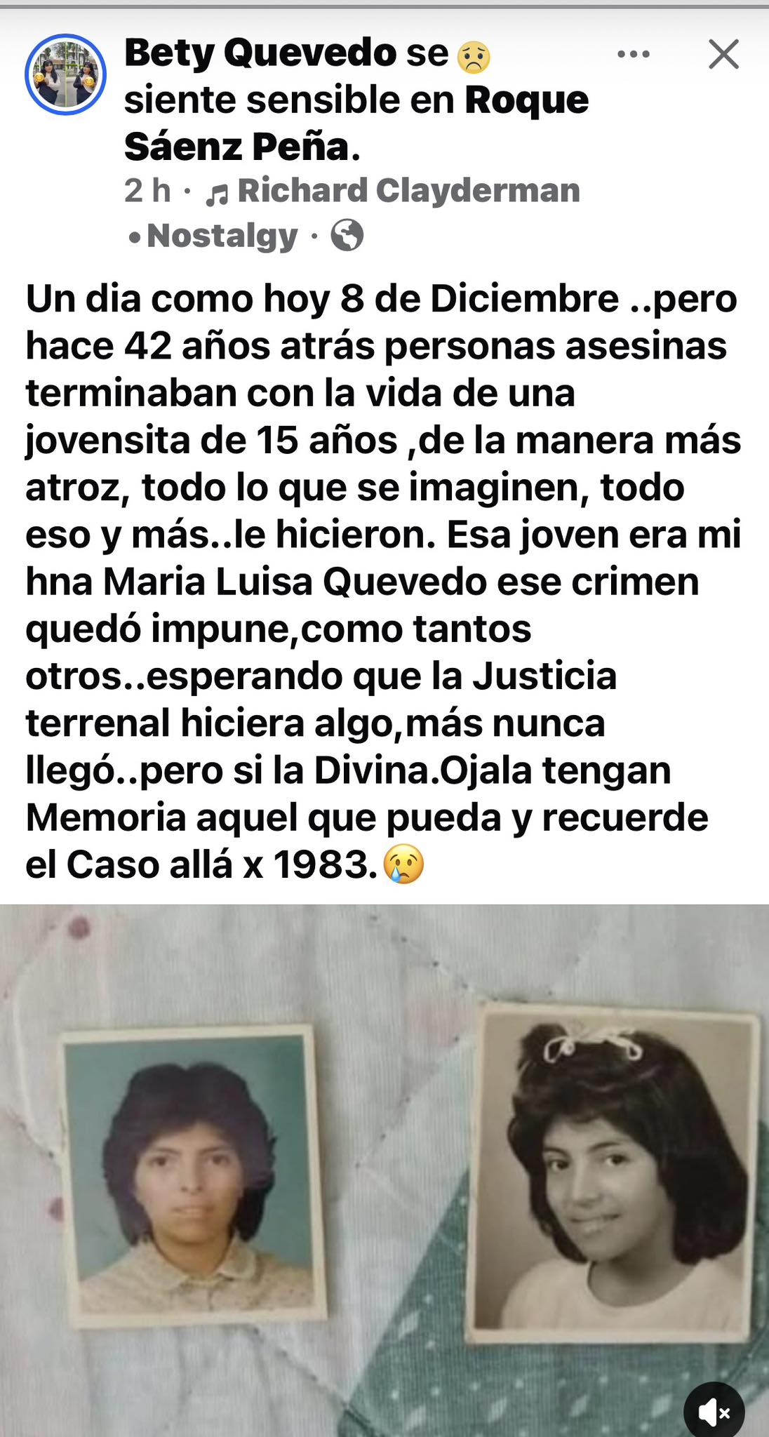 El 8 de diciembre de 1983, mientras la Argentina recuperaba su democracia después de siete años de dictadura, una adolescente chaqueña desaparecía en silencio. Tenía apenas 15 años. Su nombre era María Luisa Quevedo, y su historia todavía conmueve —y duele— en la comunidad de Sáenz Peña. Cuarenta y dos años después, el crimen permanece impune.