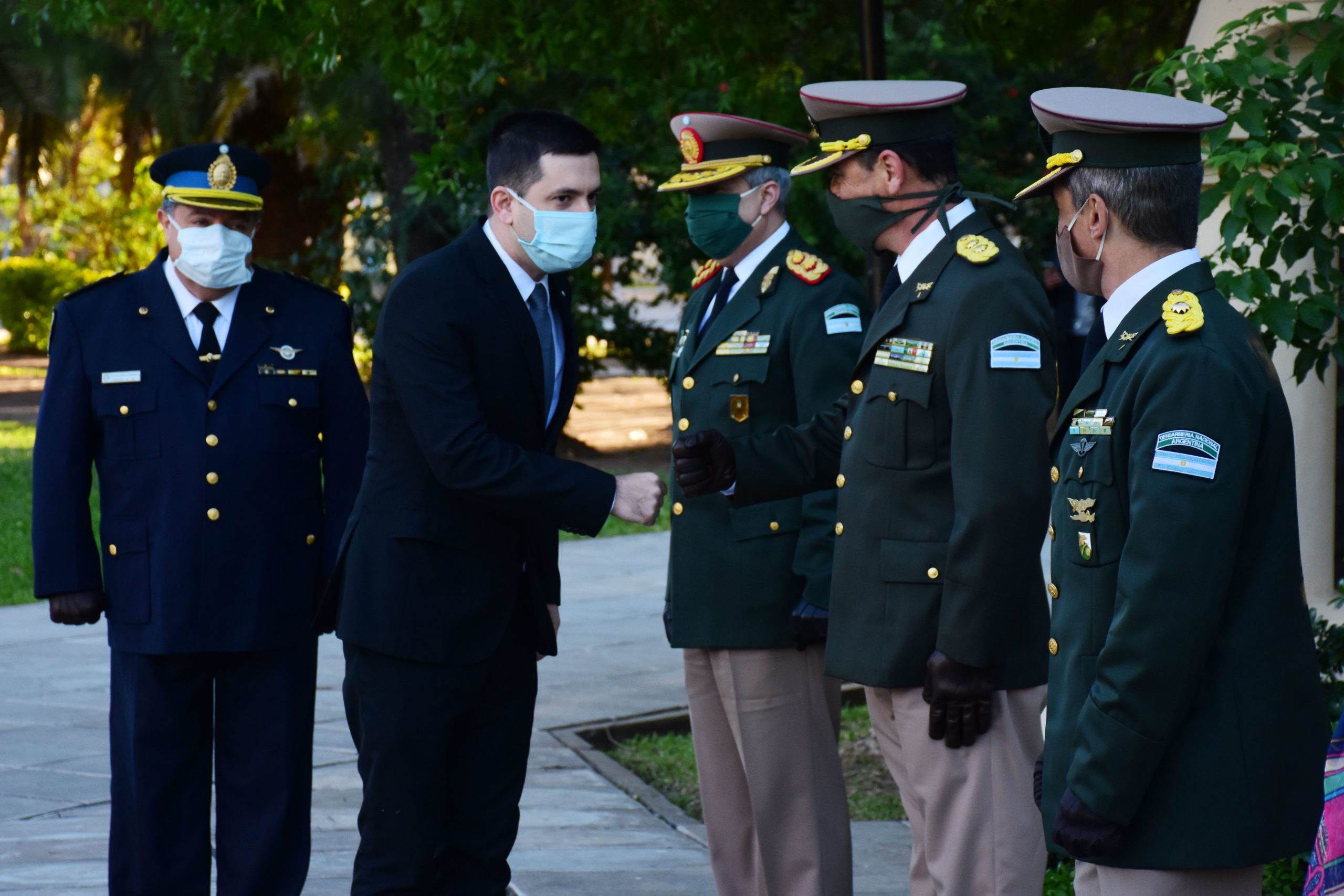 En la oportunidad, estuvo acompañado por el presidente del Concejo Deliberante, Pedro Egea; la secretaria de Cultura y Educación Ciudadana, Alicia Gaña; el Director de Zona Interior Sáenz Peña, Comisario Mayor Manuel Silva; el jefe de la Delegación Sáenz Peña de la Policía Federal, Comisario Mayor Fernando Orihuela; jefe del Escuadrón 1 de Gendarmería Nacional, Comandante Principal Cristian Marangón; el segundo jefe del Escuadrón 1, Comandante Julio Cesar Pedraza y el jefe del Comando de Región VIII de Gendarmería Nacional Argentina, Comandante General Carlos Alberto Vélez.