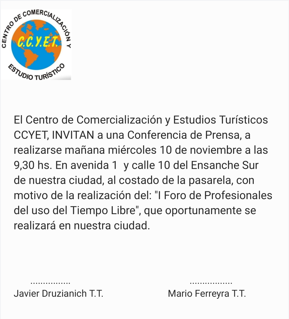 «Está organizado por el centro de comercialización estudio turístico quién tiene una trayectoria de más de 23 años dónde empezaron como estudiantes de turismo luego seguimos como profesionales. Hicimos eventos en toda la provincia y estamos en proyectos turísticos, vamos a empezar a trabajar y aportar un poco más, luego de lo que trajo aparejada esta pandemia. Aprovecho la oportunidad para invitar a todos los empresarios involucrados directa o indirectamente en el tema del turismo, queremos que entre todos podamos sacar adelante y salir de la situación que viene agravando estos últimos tiempos.», acotó.