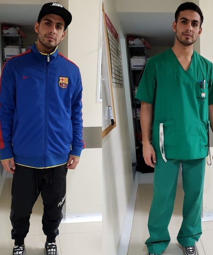 Lejos de angustiarse, Guzmán decidió tomar la situación con humor. Se saco una fotografía en su trabajo de como había llegado vestido y otro usando el uniforme, a modo de comparación. «Señora ojala que nunca necesite de mi, porque para su fortuna, la voy a ayudar taiga la ropa que traiga», es el texto que acompaña la imágenes.