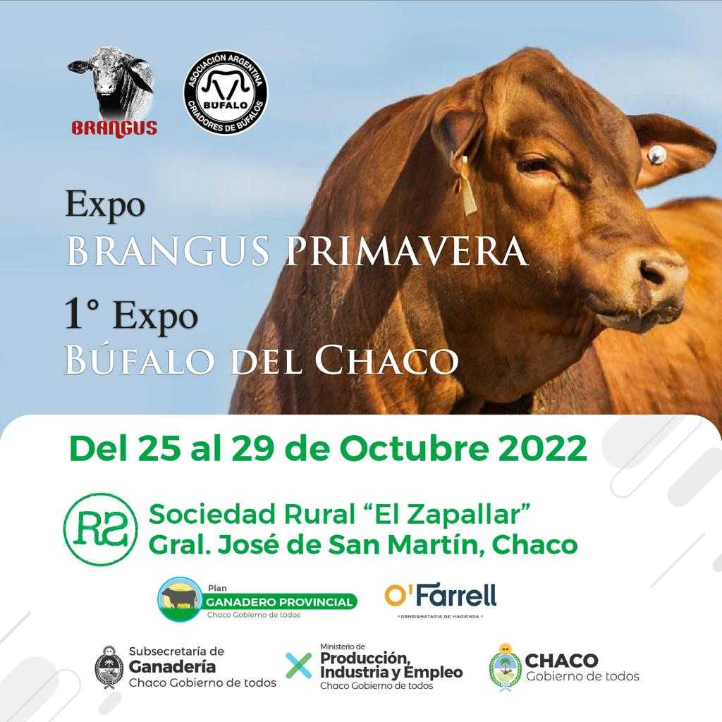 El gobierno provincial invita, desde el 25 al 29 de octubre, a la “Expo Brangus Primavera” y “1º Expo Búfalo del Chaco”, que se desarrollarán en la Sociedad Rural “El Zapallar” de General San Martín. Habrá capacitaciones técnicas a productores, agasajos, reconocimientos y entrega de premios a los animales destacados. Para finalizar un remate con la participación de la firma consignataria O´Farrell.