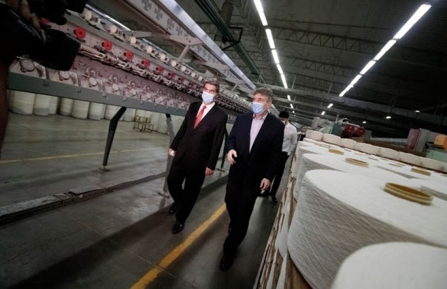 El gobernador Jorge Capitanich visitó este jueves la textil Santana en Puerto Tirol junto a su CEO, Raimundo Delfino Filho, con quien supervisó el trabajo que viene realizando la firma abastecedora del 30% del mercado textil argentino.