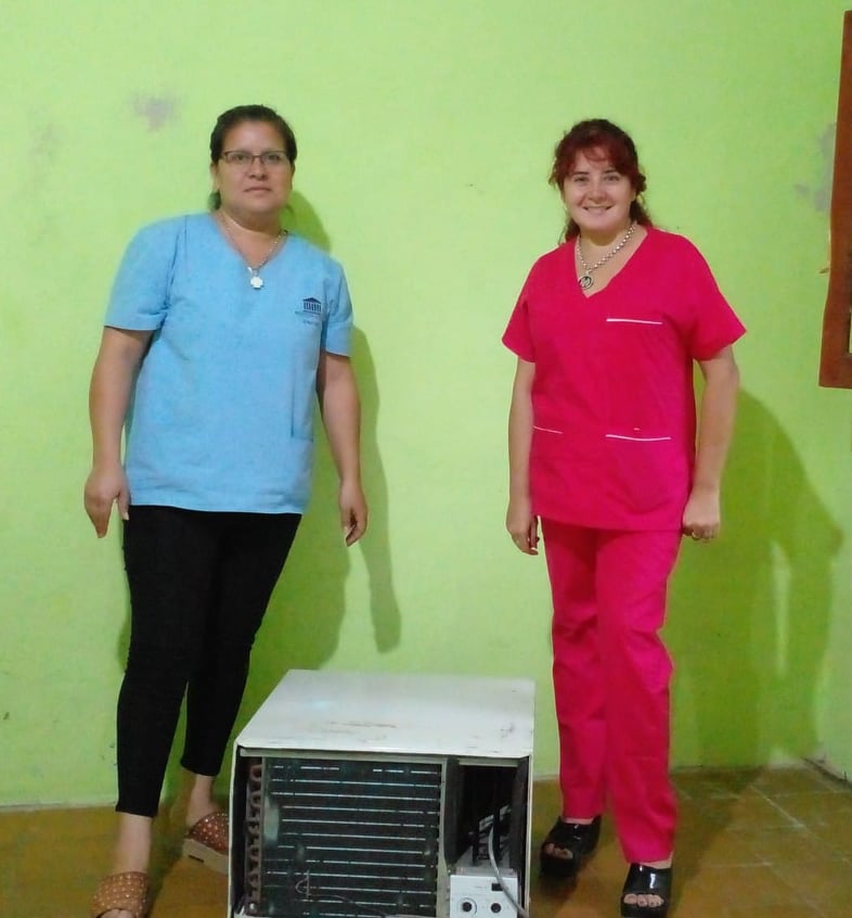 Esta mañana , La directora de Zona Sanitaria Centro Chaqueña Lilian Marolo visitó el puesto Sanitario el Paraisal, Jurisdicción de Quitilipi, en el lugar fue recibida por Olga González trabajadora del puesto Sanitario, hizo entrega de un Aire acondicionado y Medicamentos para los vecinos de la zona.