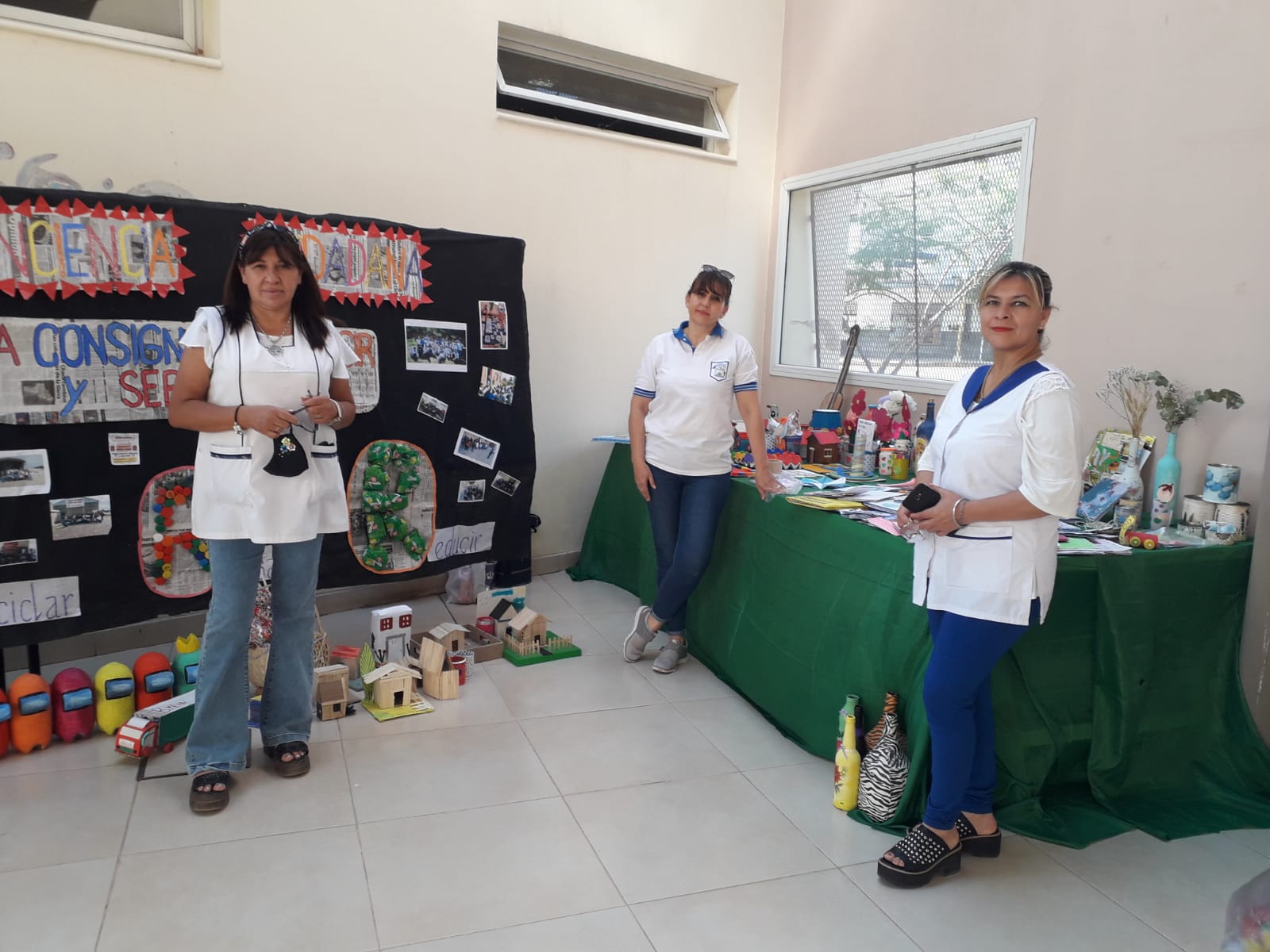 La docente Gauna, Vilma añadió: “Parte de los contenidos que hoy exponemos es por ejemplo el trabajo para eta cantidad de libros en 3D donde ellos plasmaron los contenidos de la información que les brindamos. Además, el uso del diccionario, métodos de investigación ayudó a que el alumno se capacite y no deje de recibir educación. Volcaron sus conocimientos sobre la Eco-Botella. El municipio nos proveyó un libro informativo, además de una compostera donde los chicos llevaban cosas orgánicas para