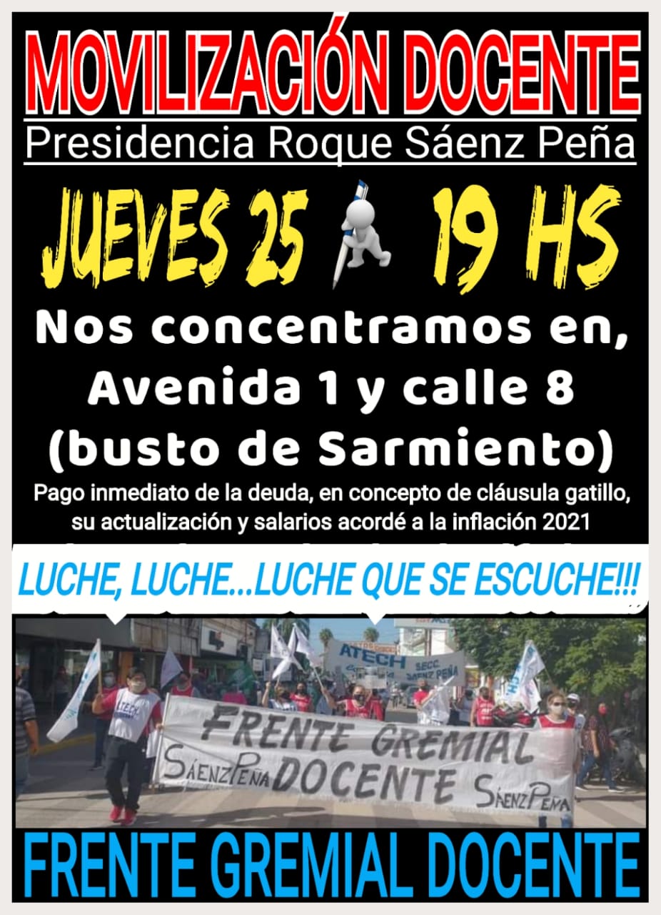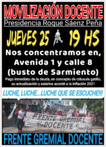 Sáenz Peña – Continúa la movilización docente para este Jueves 25 de Febrero, por parte del Frente Gremial Docente.