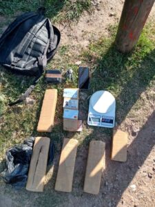 Al palparlo de armas en forma preventiva, sienten debajo de un buzo, rectángulos compactos y sospechosos, logrando encontrar sobre la anatomía del identificado, 4 panes rectangulares grandes y uno pequeño de una sustancia compatible con marihuana. Se procedió al secuestro de la misma, como así el aprehendido a quien se lo conoce en la ciudad Termal con el alias de «Carpincho» quien será puesto a disposición de la Fiscalía Antidrogas.