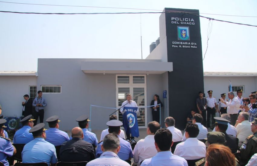 El gobernador Domingo Peppo inauguró, este martes, la Comisaría 6° de Sáenz Peña, a la que proveyó de una camioneta y un motovehículo. Además, entregó tres patrulleros al Servicio de Emergencia 911 local. “En estos cuatro años de gestión trabajamos en beneficio de la comunidad para que cada habitante viva tranquilo”, expresó. El nuevo edificio policial, que se encuentra en el barrio Néstor Kirchner de la cuidad termal donde brindará seguridad a una población de 80.000 habitantes, tiene como jefe al comisario Manuel Esteban Ayala. La obra inaugurada demandó una inversión que alcanzó los 798 mil pesos.