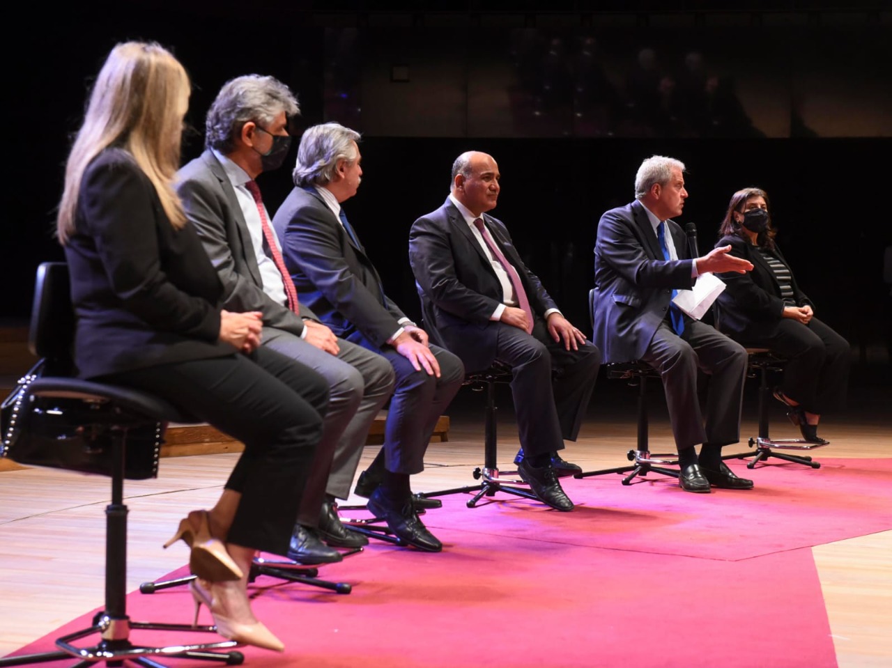 El rector de la Universidad Nacional del Chaco Austral, Germán Oestmann y el vicerrector, Manuel Gracia Sola, estuvieron presentes en el Centro Cultural Kirchner donde se llevó a cabo la jornada organizada por las carteras de Educación y Ciencia, Tecnología e Innovación y fue presidida por el presidente Alberto Fernández, el jefe de Gabinete, Juan Manzur, el ministro de Educación, Jaime Perczyk, y el de Ciencia, Tecnología e Innovación, Daniel Filmus.